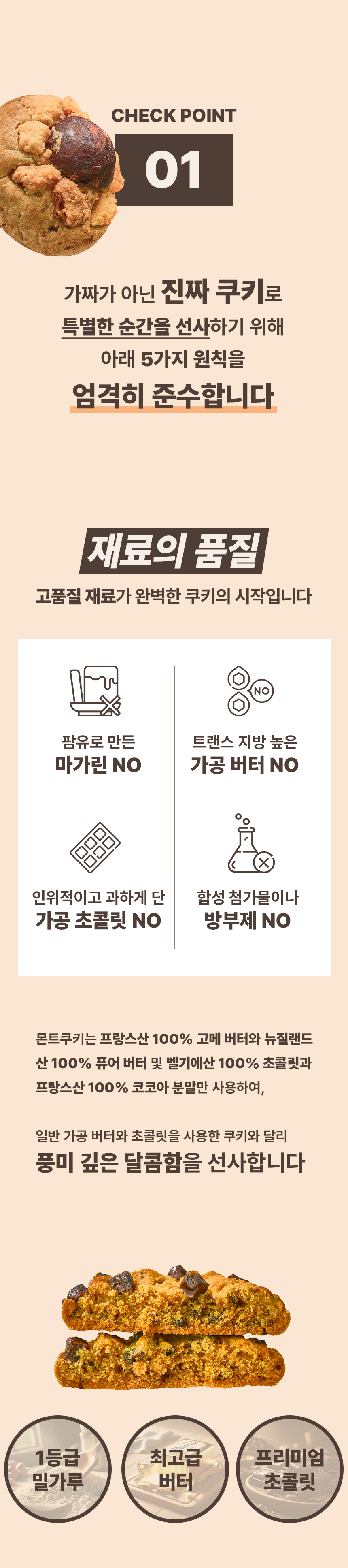 보존료(방부제)와 인공 색소(레드벨벳 크림치즈, 땅콩 킹쿠키 제외)가 포함되어 있지 않습니다.