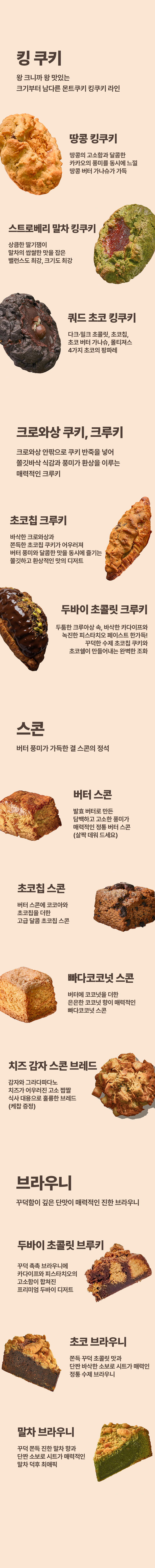 보존료(방부제)와 인공 색소(레드벨벳 크림치즈, 땅콩 킹쿠키 제외)가 포함되어 있지 않습니다.