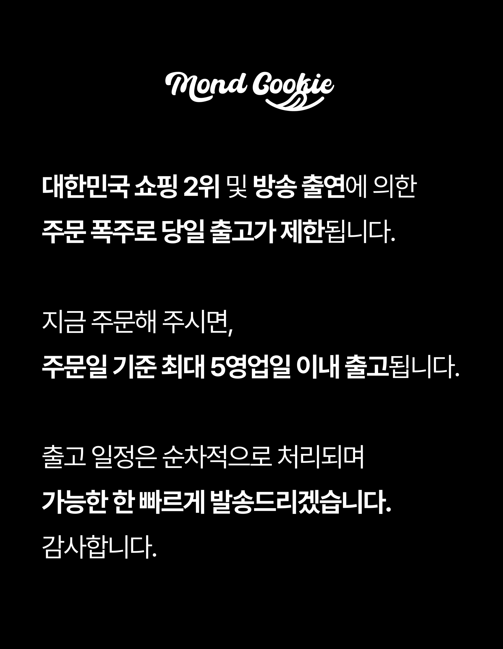 ※ 택배사 사정에 따라 배송이 지연될 수 있습니다.